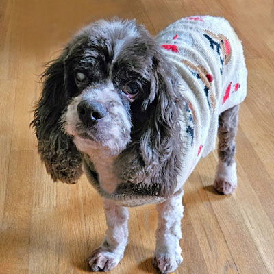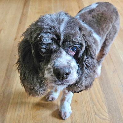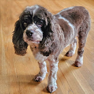 Gracie is such a good girl!  Gracie is a young a 14.5 year old,  20 pounds cocker full of cuteness overload.  Gracie is good with dogs and cats too. She has plenty of pep in her step on walks and maneuvers steps perfectly in her foster home.  Gracie has excellent leash and car manners.  She has a cataract in her left eye with vision. Gracie is snuggly with her foster family and ready to find her forever home.