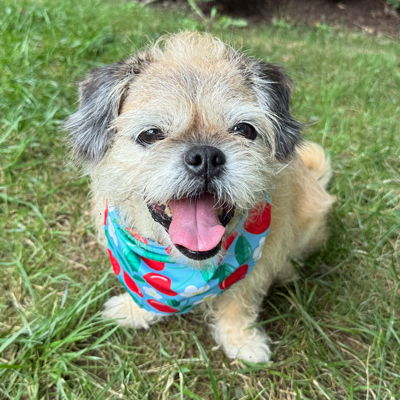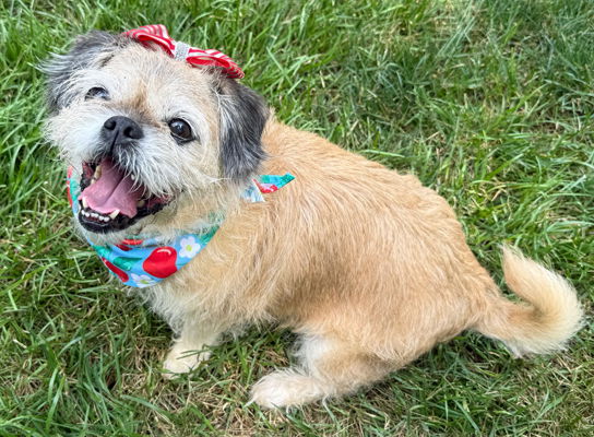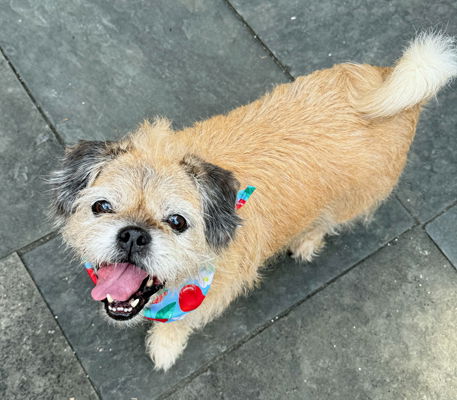 Calypso is the cutest, happiest girl! Calypso is a 10 year old, 20 pound terrier-pug mix. She is beyond cute! She has the cutest happy dance on the leash with excellent manners. She is house trained and great with the two pups in her foster home. Calypso could be your solo pup too. She is quiet when left alone making her condo friendly too. This girl loves treats! Check her out here!