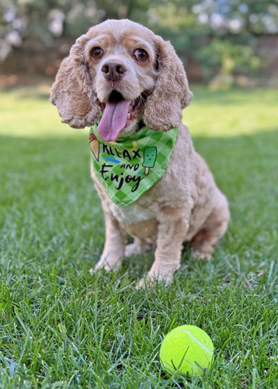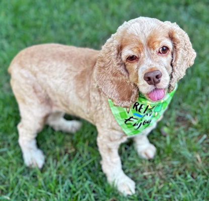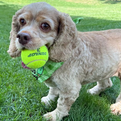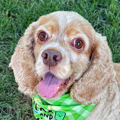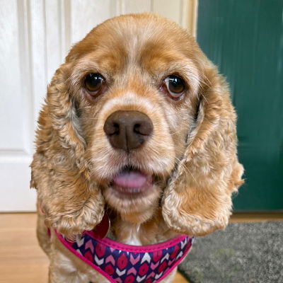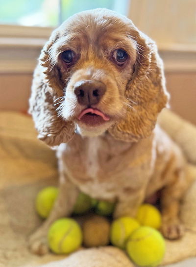 Delilah is a delightful 6-year-old, 28-pound buff cocker spaniel. Delilah loves, loves, loves balls and treats. She will chase balls all day long in her fenced yard, so much so, she would love a fenced yard. Delilah has great leash manners but is shy to meeting new people and will give a quick woof, woof. When she is happy, Delilah has the very best cocker wiggle butt! Delilah will give soft kisses. She is house trained and rides quietly in the car. Delilah needs to be your one and only pup in her forever home. We don't know about cats and feel an adult home is ideal for Delilah.