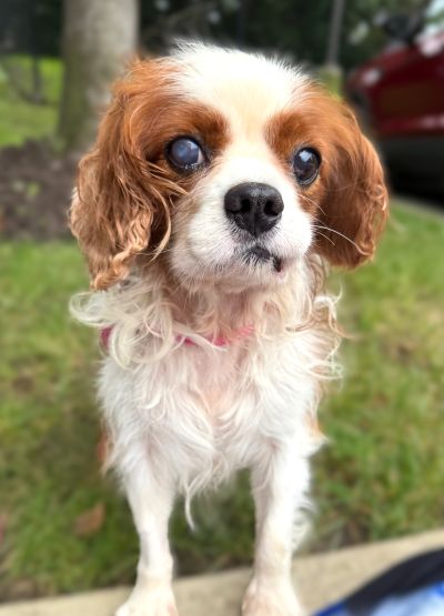 YesPlease re-welcome Colby the Cavalier to OBG! Colby is the cutest guy weighing in at 16 pounds and 8 years old. Colby is great with other dogs and happy to now be living inside for the first time in his life. He enjoys the good life -- couches and beds favs! Colby arrived with horrible dental disease and lost all of his teeth. That doesn't stop him eating like a normal pup. Colby also has the cavalier heart murmur (Grade 3 of 6) and his echocardiogram revealed mild valve disease that needs no medication and is typical of the breed. Colby is a cutie and ready now to find his forever family.
