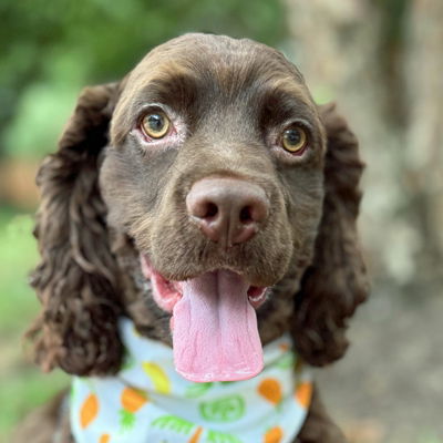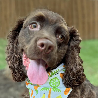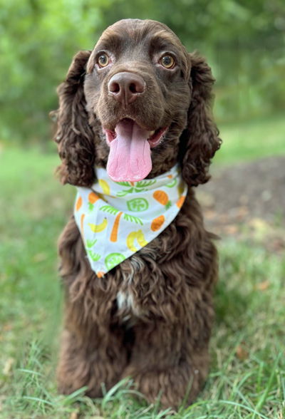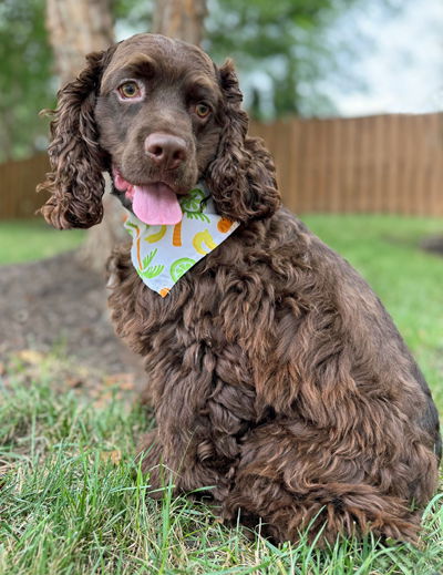 Meet Raisin! Raisin is a gorgeous 10-month-old chocolate cocker spaniel. He weights 28 pounds and is a perfect weight. Raisin is a typical puppy with puppy energy and wants to play, play, play! Raisin was surrendered to a local MD shelter before we brought him to OBG. Raisin is very friendly with everyone, including kids, dogs and people. We aren't sure about cats. Raisin will need an adopter dedicated to working on his house training without long hours crated.