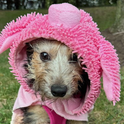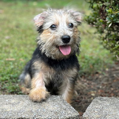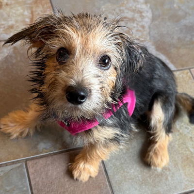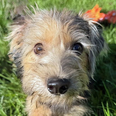 YesADOTPED! Good Girl Goldie is the cutest little terrier mix! We estimate her age at ~7 months and she weighs just 10 pounds. Goldie is doing great in her foster home and is crate and house trained. She loves other dogs, too. Goldie enjoys playing with toys and with bring it back to you! She is already learning how sit and down. Check her out here! She loves cuddles and sleeping in the big bed. Goldie is our golden girl of cuteness!