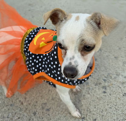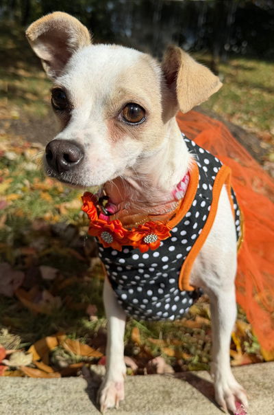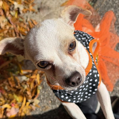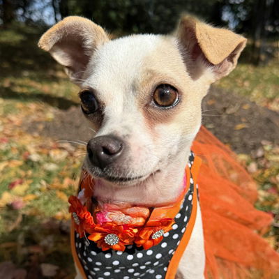 YesWelcome Sparkles with her sparkling personality to our cocker rescue. You are correct that she isn't a cocker spaniel! HA! She is the absolute sweetest 2'ish year old chihuahua! She is quiet with the best side eye. LOL. She weighs around 10 pounds and loves to be near her person. She will give little kisses and wants to sit in your lap! Just the kindest little girl. She was found running with another pup so is good with other dogs.