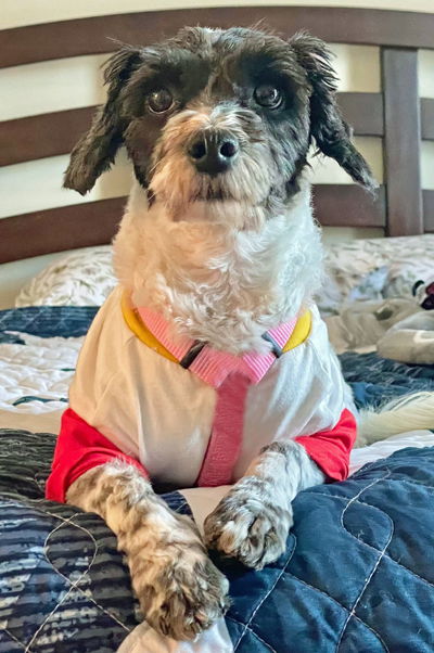 Miley is an adorable 6-year-old, 12-pound Poodle-Coton de Tulear mix in need of a forever home. Miley is in search of a quiet home with a securely fenced yard. At first Miley had no idea how to walk on a leash, but in only two weeks, she has mastered leash walking but can easily be scared by moving cars and loud noises. She is scared of children and their sudden movements, so a home without littles is ideal. She is not aggressive at all. Miley is mostly house trained and is doing very well with routine and positive reinforcement.