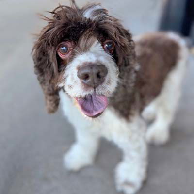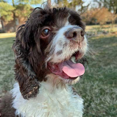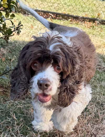 Shiloh is looking for a forever home! She is 12 years old and weighs 30 pounds. Shiloh is a beautiful deep chocolate and white cocker spaniel. Shiloh is house trained and has excellent leash and car manners. Check her strutting her stuff here! Shiloh loves everyone and greets them with a wagging tail. Shiloh was raised with children and the prior owner said she was great with kids. Shiloh enjoys playing with toys and will bring them back to you if you throw them for her. She is a very sweet girl. She is currently an only pup in her foster home; however, in a previous home she did well with the other smaller foster pup.