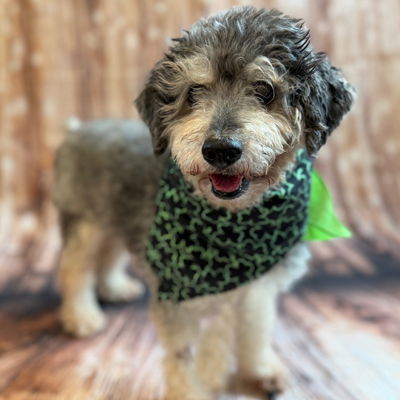 YesWelcome Lanny to OBG! Lanny is a gorgeous schnauzer-poodle mix with lots of pep in his step. He is around 10 years old and weighs 17 pounds. Lanny is very friendly and enjoys walking in his neighborhood. He also enjoys toys, especially shredding the toys! LOL Lanny is fostered with a senior pup, and he is fine around other dogs. He is house trained with good house and car manners. Lanny is allowed to be crate free and easily handles the stairs in his foster's townhouse.