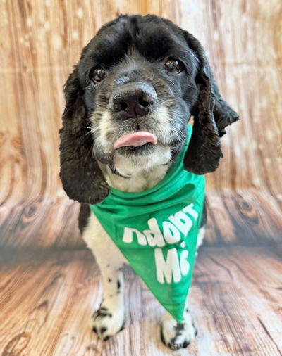 YesPlease welcome 4-year-old, 29-pound Hannah to OBG! Hannah is a beautiful black and white cocker spaniel who is ready to find a forever home with a securely fenced yard and no other pups. Hannah is house trained, snuggly and so sweet! She is great with kids too. Hannah is not a condo or city girl; she’s looking for a home in the ‘burbs to chill and enjoy life! Check out a cute video of her all dolled up for St. Patrick's day!